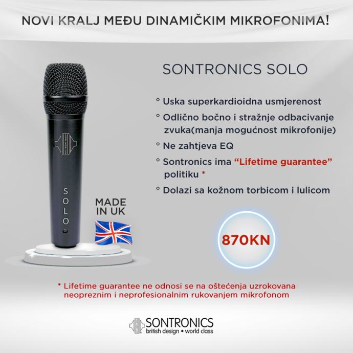 The Sontronics SOLO is a handheld dynamic supercardioid microphone that is the world's first dynamic mic to be designed, developed and made in the UK.