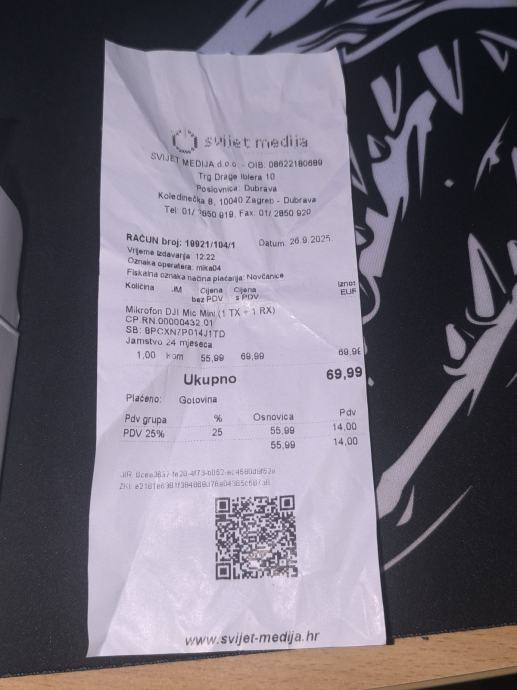 Dji mic mini mikrofon, jednom korišten, uzet radi snimanja ali radi prebacivanja na noviji model prodajem.