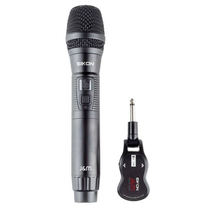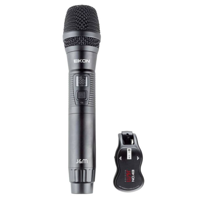 Eikon EKJM UHF bežični vokalni mikrofonski set. Eikon EKJM sistem dolazi sa 3x jedinice: prenosni transmiter/mikrofon, kompaktni receiver veličine konektora i USB-USB C punjač kabel. Mogućnost korištenja do 6x sistema istovremeno bez ometanja signala.