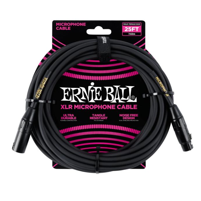ERNIE BALL 6073 Black, mikrofonski kabel XLR-XLR duljine 7.5m (25 ft) - odličan kabel modernog dizajna izrađen od visokokvalitetnih materijala.