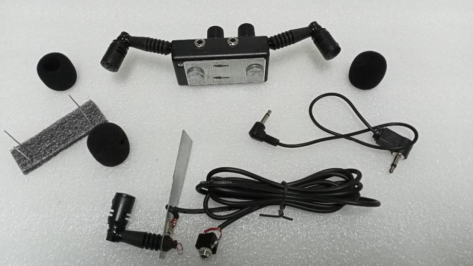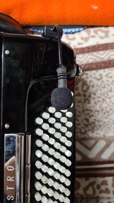 Mnogi koji sviraju harmoniku a sviraju i basove imaju problema kad treba svirati na razglas jer za desnu stranu se koristi mikrofon na stalku ili letvica, dok pomična strana sa basovima ostaje neozvučena. Ovo je rješenje za taj problem. Na standardnoj aktivnoj letvici sa kondenzatorskim glavama nalazi se dodatni ulaz i potenciometar za glasnoću za mikrofon u basovima. Taj mikrofon može biti vanjski ili smontiran u bas komoru na harmonici ali to zahtjeva zahvat provlačenja kabla kroz mijeh što za poznavaoca svoje harmonike i nije neki problem (eventualnom kupcu kompleta prije slanja mogu poslati na mobitel uputstvo za instalaciju kabela sa fotografijama, stopu po stopu). Tako se mogu regulirati glasnoće lijeve i desne strane svaka za sebe. Tu su i kablovi za međusobnu konekciju te kabel od 5 m za spajanje na aktivni zvučnik ili miksetu. Montaža na poklopcu harmonike je predviđena magnetskim putem, priložena pločica sa žicama smontira se na poklopac i tu ostaje trajno a letvica se po potrebi "nabaci" na nju. Na fotografijama je sve vidljivo a šaljem poštom na teret kupca uz cijenu 120 eura fiksno plus troškovi slanja. Preporučam informacije preko Njuškala kako bi ostao pisani trag eventualnog dogovora, ali može i mobitelom u razumno vrijeme. .