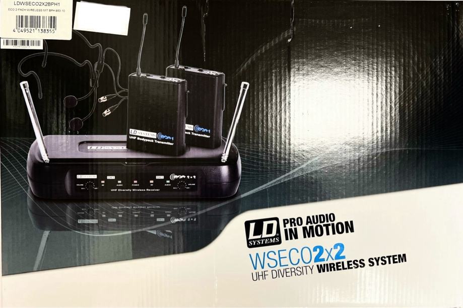 Prodajem LD Systems ECO2x2 BPH1 UHF Diversity Wireless sistem, transmitter s dva body pack receivera i dva naglavna bežična headset mikrofona, stanje kao novo, korišteno svega nekoliko puta. Prodaje se jer je višak.