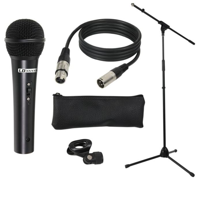 This bundle consists of all the basic components a vocalist needs. The set contains a Stage-suitable microphone with a carrying bag, a sturdy microphone stand with clamp and a 5m XLR microphone cable.