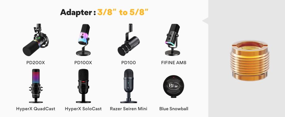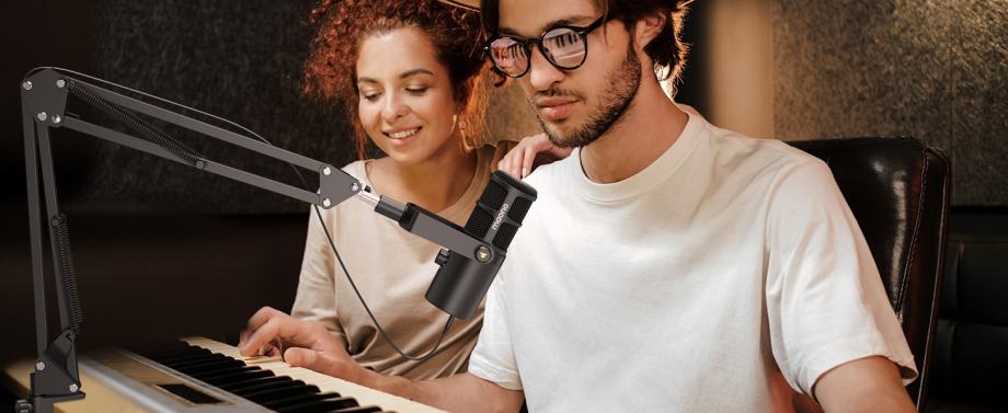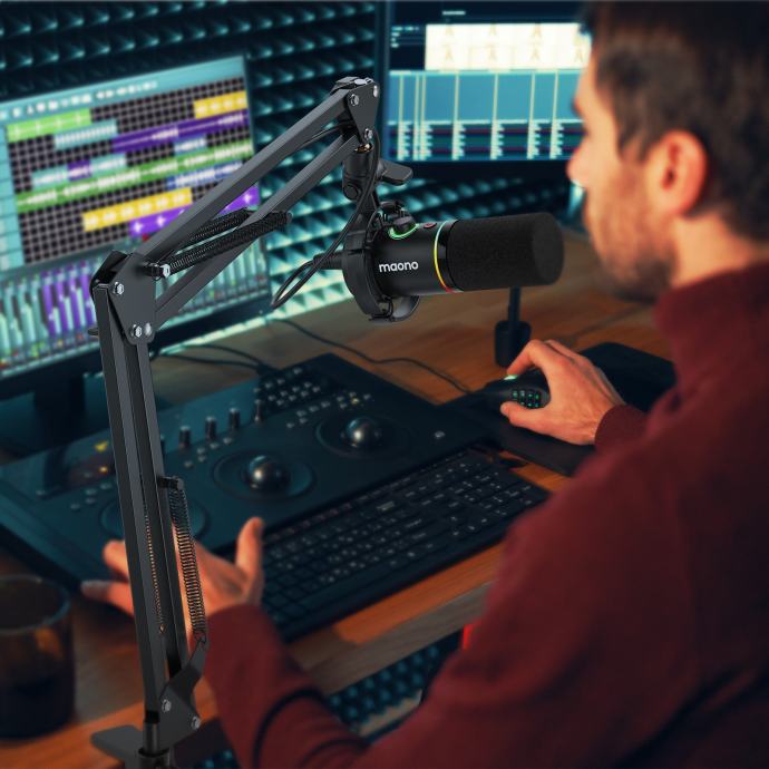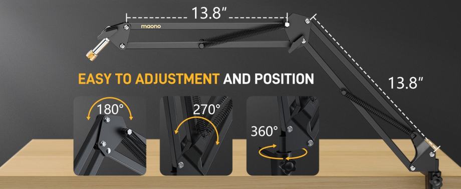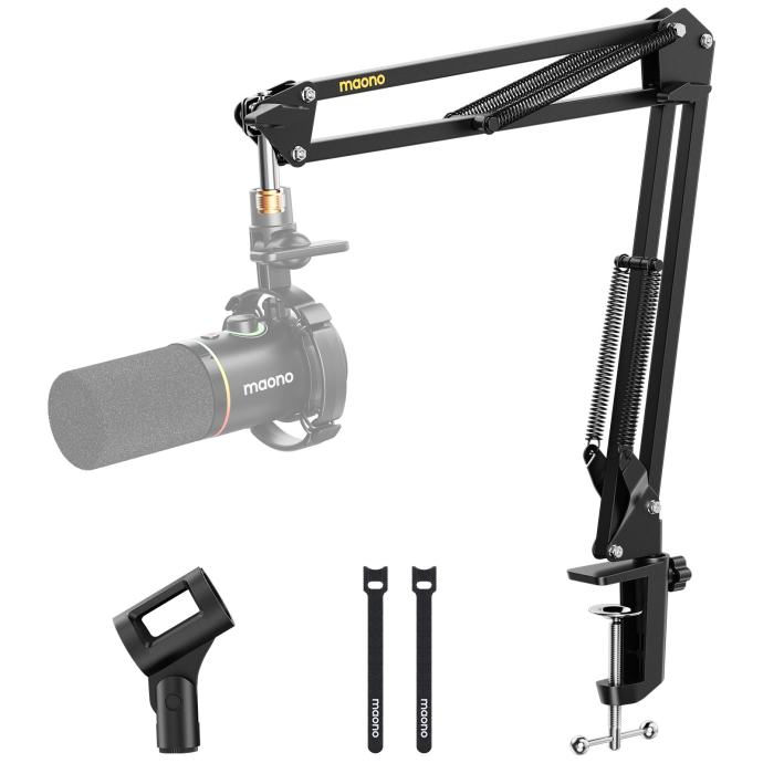 4. Professional kit includes microphone scissor arm stand, desk mounting clamp and microphone clip