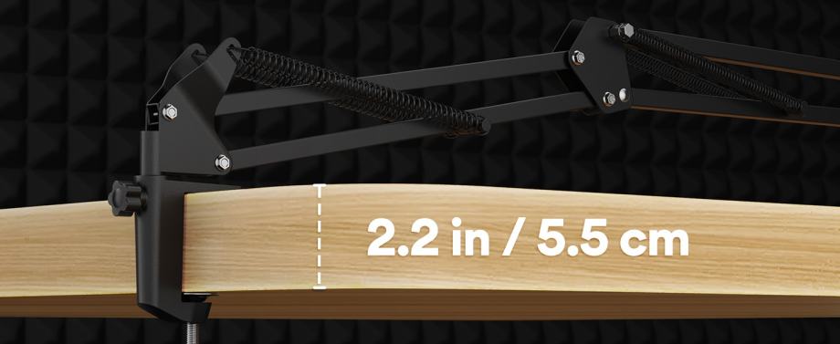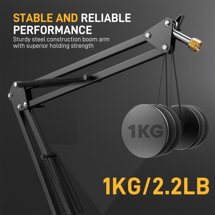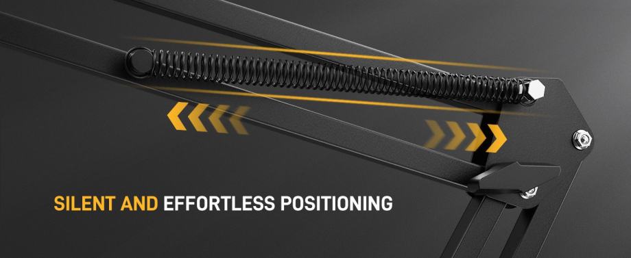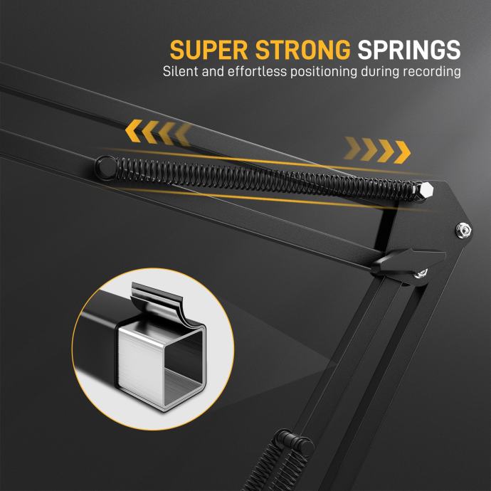 1. Dual suspension springs on each boom arm protect the microphone from suddenly dropping