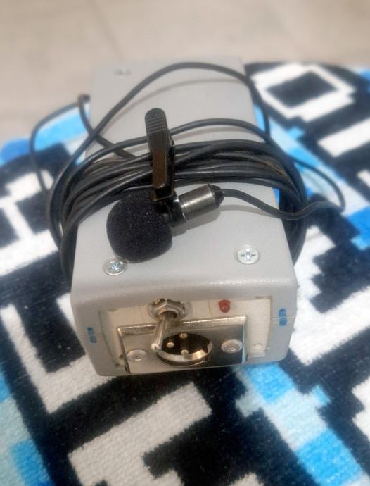 u plastičnom kućištu s kopčom za remen , prekidačem, kontrolnom diodom i XLR priključkom (canon)