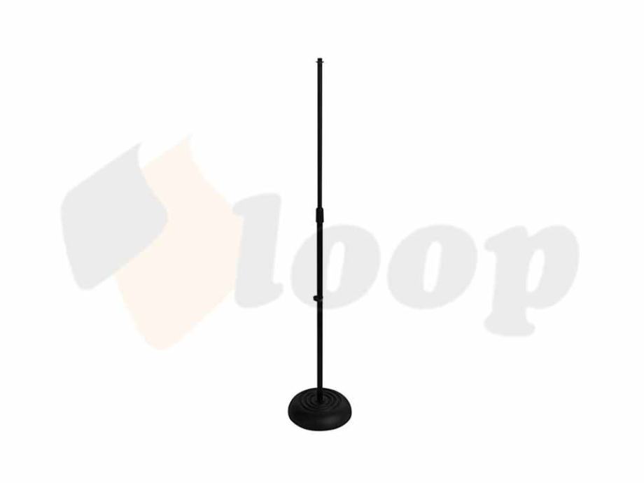 OSS MS7201B ravni mikrofonski stalak, uz atraktivan izgled, odlikuje se teškom, ali prijenosnom okruglom bazom koja pruža iznimnu stabilnost i podnosi zahtjevne uvjete. Prikladan je i za manje pozornice, gdje nema dovoljno mjesta za klasične “boom” stalke. Gumena podloga na dnu baze smanjuje vibracije i sprečava neželjeno klizanje.