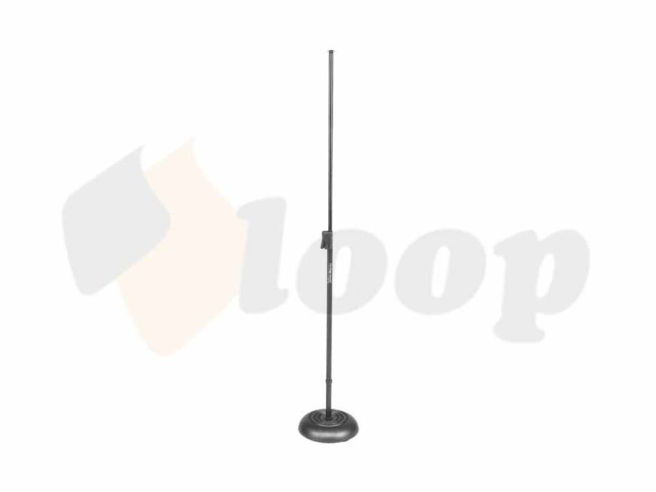 OSS MS7201QRB ravni mikrofonski stalak, uz atraktivan izgled, odlikuje se teškom, ali prijenosnom okruglom bazom koja pruža iznimnu stabilnost i podnosi zahtjevne uvjete. Patentirana “Quick release” funkcija omogućuje brzo i jednostavno podešavanje visine, a gumena podloga na dnu baze smanjuje vibracije i sprečava neželjeno klizanje. Prikladan je i za manje pozornice, gdje nema dovoljno mjesta za klasične “boom” stalke.