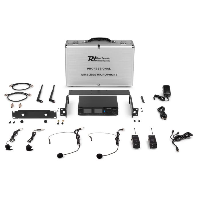 Power Dynamics PD522B UHF Wireless Microphone Set with 2 bodypack mic.