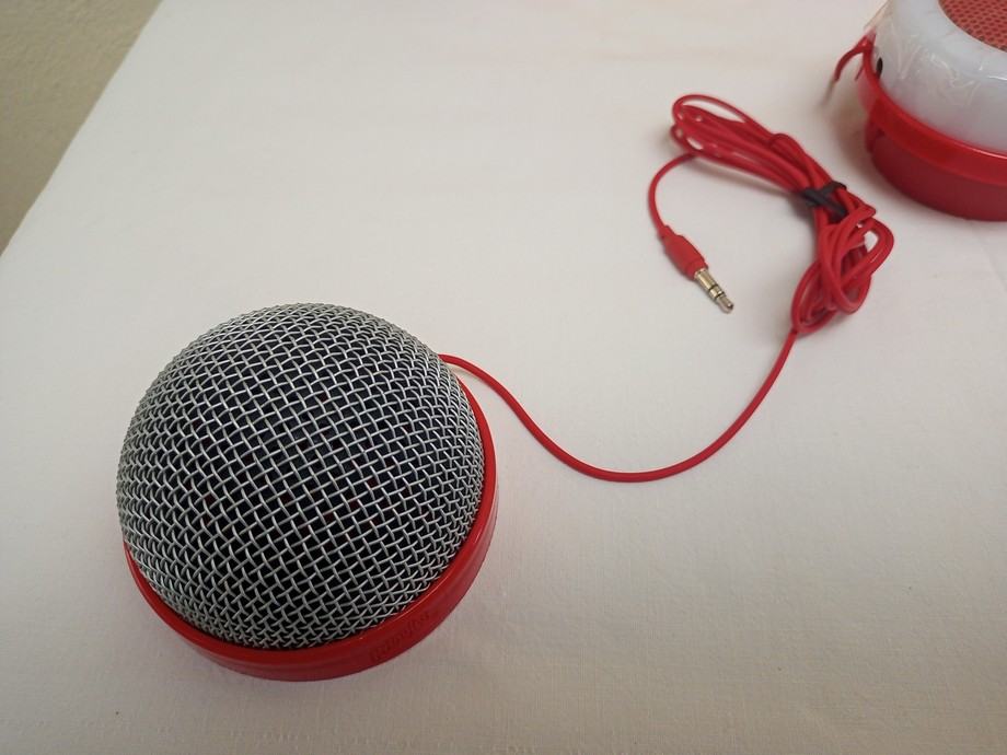 Ispravan set zvučnika i mikrofona, koji se montiraju na ambalažu Pringlesa. Fotografije priložene uz oglas prikazuju ovdje oglašene predmete.