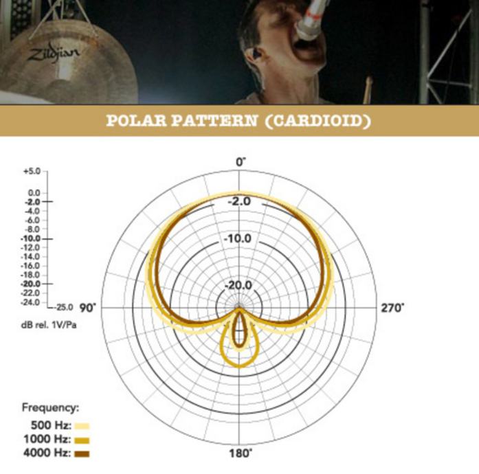 Sensitivity -46.0dB re 1 Volt/Pascal (5.00mV @ 94 dB SPL) +/- 2 dB @ 1kHz
