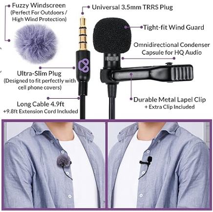 Snimajte kristalno čist zvuk gdje god se nalazili uz Purple Panda Lavalier Buttonhole Microphone Kit – lagano, diskretno i profesionalno rješenje idealno za vlogere, podcastere, intervjue, kreatore sadržaja i mobilne filmaše.