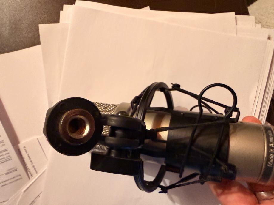 Ovaj mikrofon je odličam za snimanje vokala u studiju i kao naglavni mikrofon poviše bubnjeva uz njega ne dolazi nikakva dodatna oprema i zato je cijena kakva jeste.Nez zamjena i cijena je fiksna.
