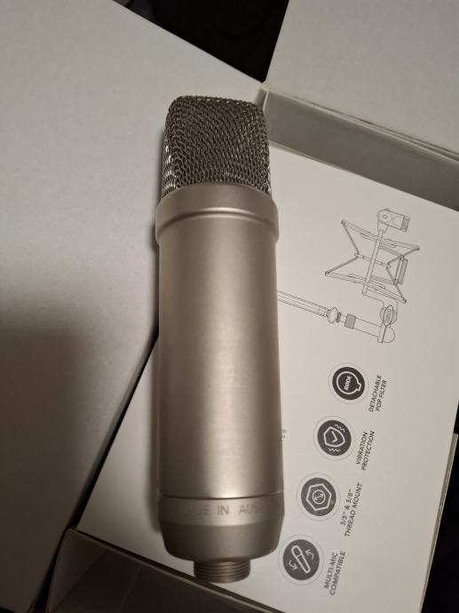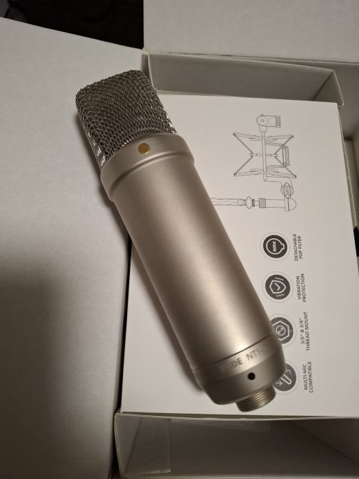 Odlican studijski svijetski standard mikrofon. Koristen u kucnom studiju jako malo. Uz njega dolazi sve sta je u originalnom pakiranju.