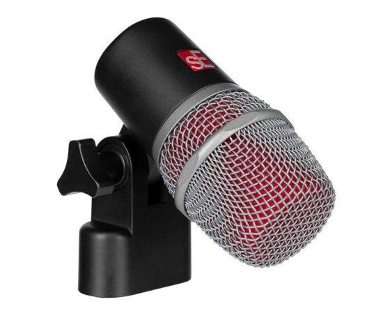 sE electronics V Beat – instrumentalni mikrofon V BEAT is the most compact drum microphone in its class, intended for use with snare or tom drums. Tuned for instrumental use, it can also be used on sources such as electric guitar speaker cabinets or brass instruments. Unique, patented integrated capsule suspension All-metal housing & spring steel grille with gold XLR connector Internal windscreen