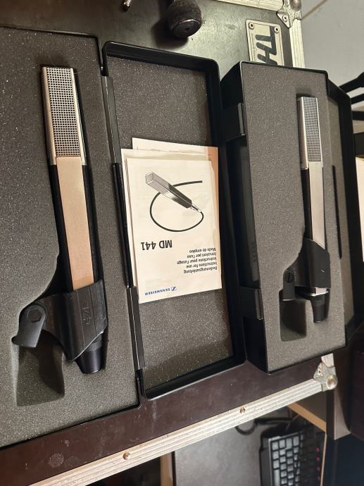Prodsjem dva Sennhaiser MD441-U mikrofona kao novi superkardiodna dinamička mikrofona svaki za 500 eura.Ovi mikrofoni se mogu koristiti u raznim opcijama:kao vokalni mikrofon,za ozvučavanje instrumenata Made in Germany.Za one koji poznavaju ove mikrofone znaju i čemu pričam.Naj-jeftiniji na eBay-u je 777 eura možete provjeriti tako da je moja cijena itekako povoljna.Bez zamjena.Cijena je fiksna.