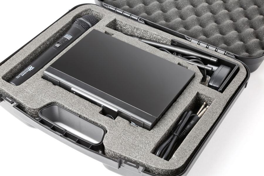 A professional reliable 8-channel UHF wireless microphone system with handheld microphone. The system ensures a strong reception of signals and an interference-free transmission. With the LCD display on the handheld microphone it was never so easy to select another channel. The microphone system operates in the 863-865 MHz band and is suitable for stage, presentations, voice and other applications.
