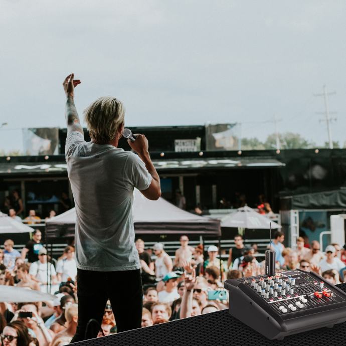 Handheld microphone is battery operated (2 x 1.5V/AA, included)