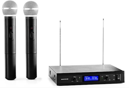 2-kanalni VHF bežični mikrofonski set s dva ručna mikrofona i jack izlazom.