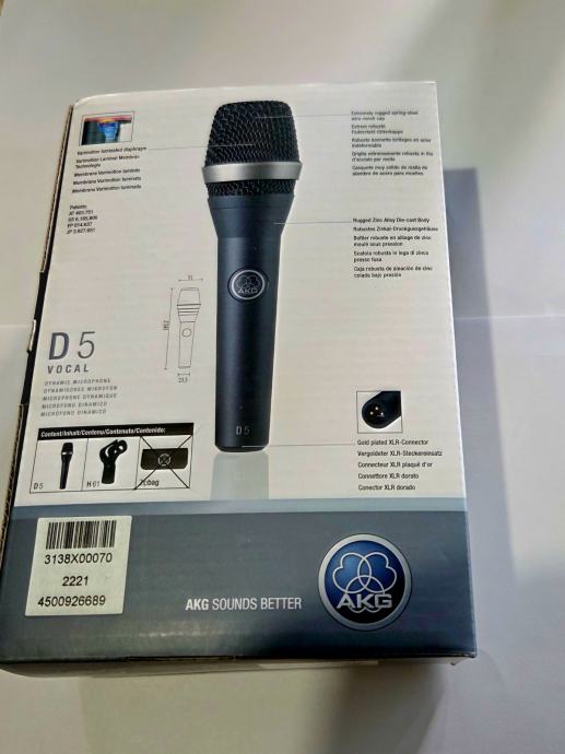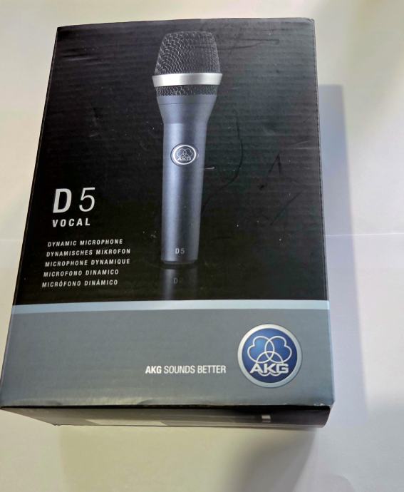 AKG D5 je profesionalni dinamički mikrofon za glavni vodeći ili prateći vokal širokog raspona, koji daje močan i prodoran kristalno čisti zvuk finih glazbenih detalja na pozornici u živo ili u studiju.