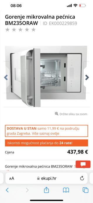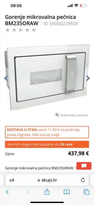 Prodaje se Gorenje ORA ITO ugradbena mikrovalna bijele boje. Stara je nekoliko godina, potpuno je ispravna i radi bez greške, a prodaje se zbog preuredjenja kuhinje i kupovine manje mikrovalne (i opet smo kupili ORA ITO model samo manji). Uglavnom, mikrovalna stvarno izgleda prekrasno, a na žalost više ih nema u prodaji.