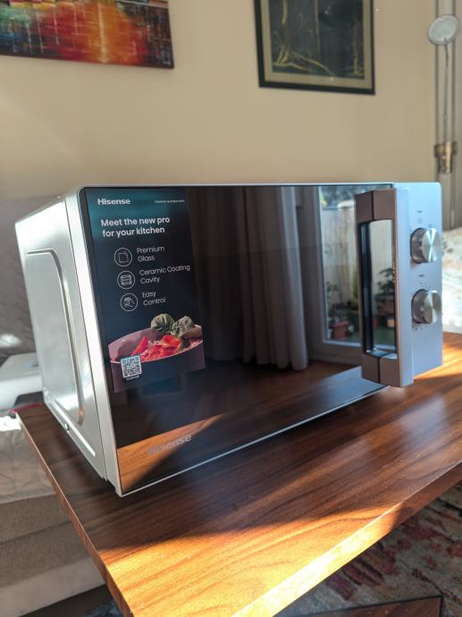 Prodaje se Hisense mikrovalna pećnica H20MOP1H (ovo kao da im je mačka sjela na tipkovnicu dok su osmišljavali ime uređaja) dobivena kao poklon nakon kupovine perilice rublja. Pošto svu hranu jedem sirovu, mikrovalna pećnica mi je višak, a uz to, pošto je kutija mikrovalne malo manja od stana u kojem živim, još mi i smeta pri kretanju.
