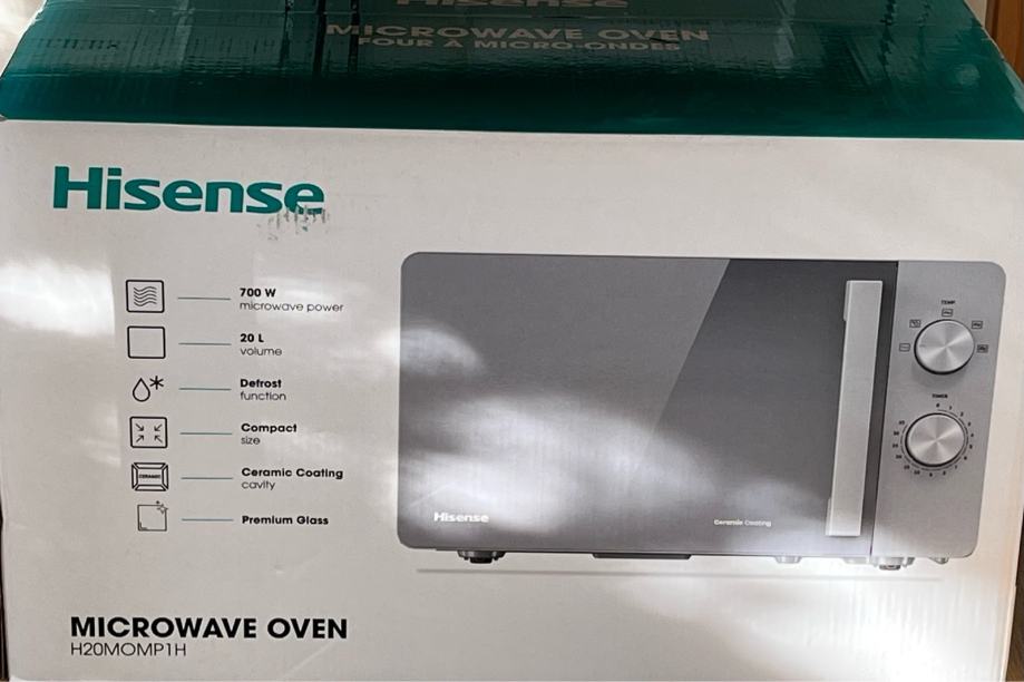 Prodajem potpuno novu Hisense mikrovalnu pećnicu model H20MOMP1H, zapakirana u originalnoj kutiji. Mikrovalna ima snagu od 700 W, kapacitet od 20 litara, funkciju odmrzavanja i keramički premaz unutrašnjosti. Kompaktnih je dimenzija što je čini idealnom za svaku kuhinju.
