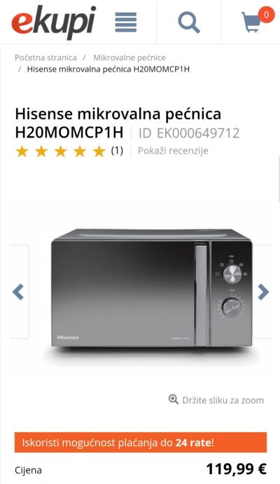 Prodajem potpuno novu Hisense mikrovalnu pećnicu. Uređaj ima elegantan dizajn u sivoj boji s dva okretna gumba za vrlo jednostavno upravljanje. Mikrovalna je potpuno nova i nekorištena, savršena za svaku kuhinju. Puna cijena u dućanu 120€