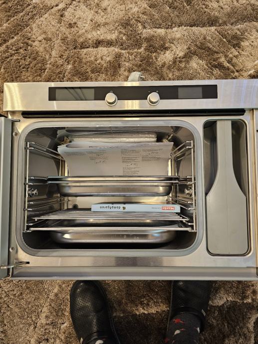Prodajem potpuno novu Miele parnu ugradbenu peć, modernog dizajna s elegantnom metalnom završnicom. Ovaj luksuzni kuhinjski uređaj omogućava zdravu pripremu hrane uz pomoć pare, idealan za zahtjevne kuhare koji cijene kvalitetu.