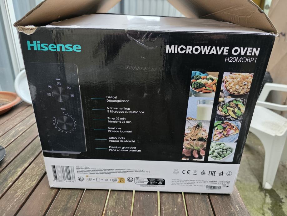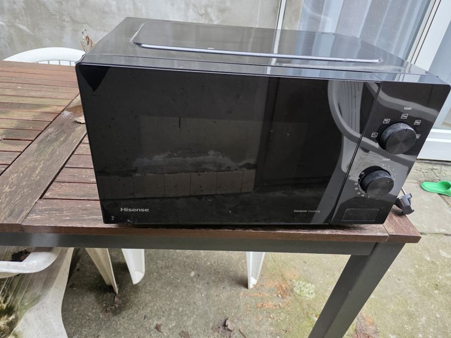 Prodajem Hisense mikrovalnu pećnicu u crnoj boji. Mikrovalna ima mehanička upravljačka dugmad s desne strane, praktična je i jednostavna za korištenje. Unutrašnjost je prostrana sa staklenim rotacijskim tanjurom. Radi besprijekorno i odlično zagrijava hranu.