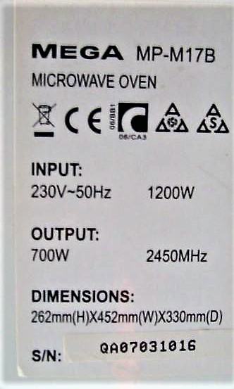 snaga mikrovalne: input 1200 W / output 700 W