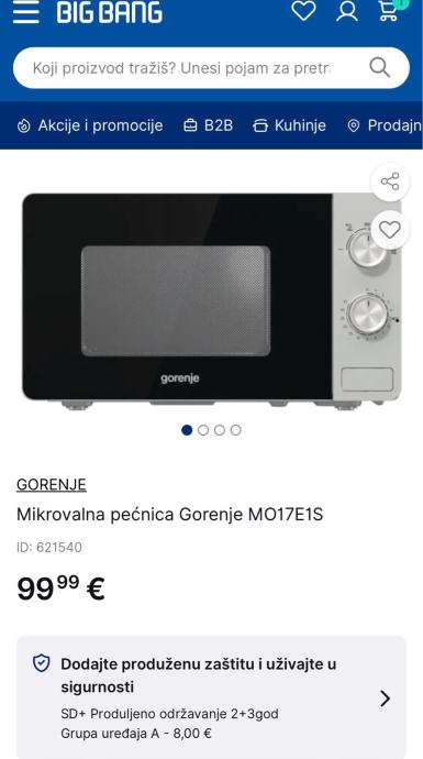 Prodajem novu Gorenje mikrovalnu pećnicu, potpuno nekorištenu. Pećnica je opremljena s ActiveClean funkcijom koja olakšava čišćenje unutrašnjosti.