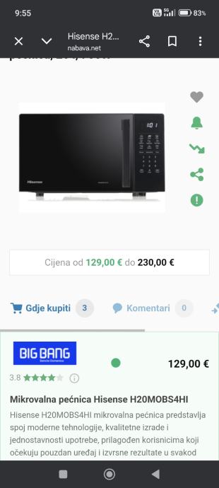 Prodajem mikrovalnu pećnicu Hisense H20MOBS4HI