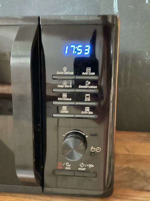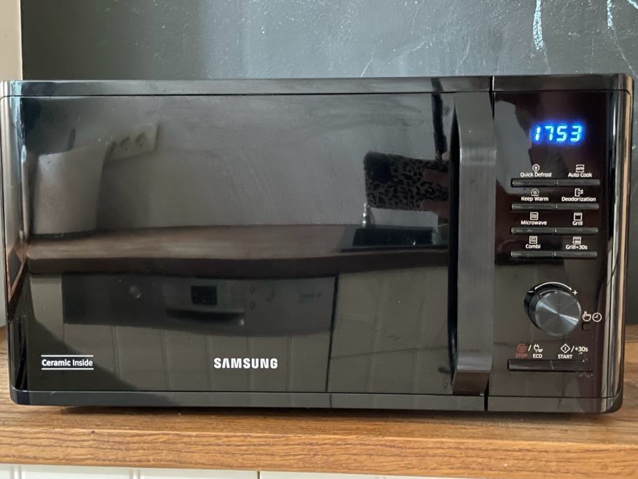 Prodajem rabljenu kombiniranu mikrovalnu pećnicu marke SAMSUNG u crnoj boji. Uređaj ima digitalni zaslon, keramičku unutrašnjost i više funkcija uključujući brzo odmrzavanje i grill te održavanje topline, programiranje za pripremu, ECO način i deodorizaciju. Očuvana je i u potpuno funkcionalnom stanju.