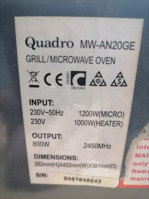 Quadro MW- AN20GE, snage 1200W (micro) i 1000W (grijanje)