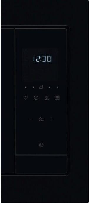 Elegantan, minimalistički dizajn mikrovalne pećnice u crnoj boji visokog sjaja odgovara pećnici i drugim uređajima.