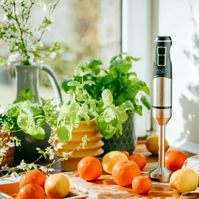 Otkrijte novu dimenziju kuhanja s mikserom za štapiće! Ovaj jedinstveni kuhinjski aparat dizajniran je za ljubitelje kuhara koji cijene i funkcionalnost i stil. S naprednim značajkama i elegantnim završetkom, blender će postati neophodan pomagač u svakoj kuhinji. Savršeno za sve koji traže pouzdan i svestran kuhinjski aparat, Adler kombinira učinkovitost, stil i izdržljivost. Bilo da pripremate zdrave smuke, krem juhe ili hladne koktele, ovaj ručni mikser uvijek će vam pružiti sjajne rezultate.