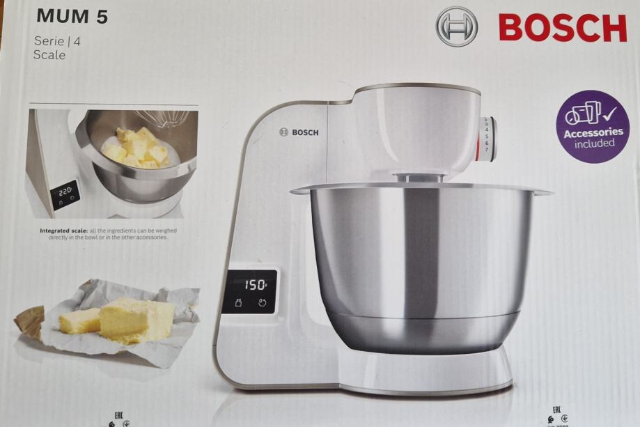 Prodaje se Bosch kuhinjski robot MUM5XW20 (Seria 4), bijela+boja šampanjca, novo i zapakirano s jamstvom (2 godine) za 320 €.