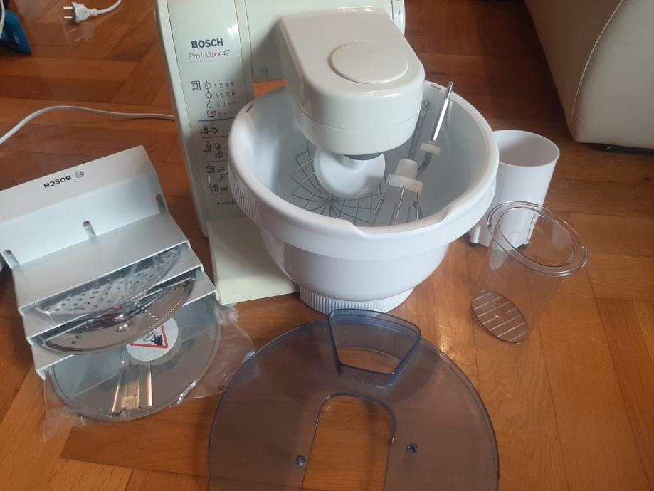 Prodajem Bosch ProfiMixx 47 stolni mikser sa zdjelom i raznim nastavcima koji dolaze s njim od čega su većina nekorišteni. Mikser je jednom korišten jako kvalitetan i u odličnom stanju.