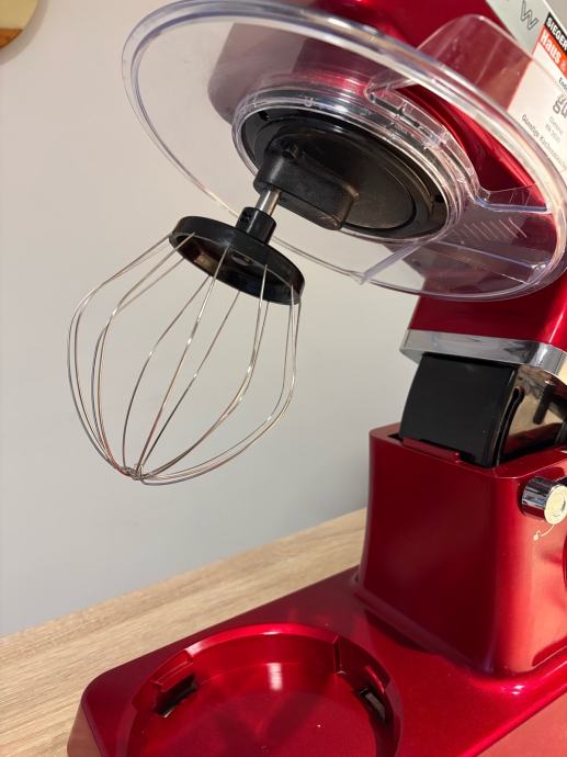 6 brzina rada. Posuda je od inoxa zapremnine 4,5 litre. Ispod su 4 pipca od gume koji omogućuju da se mikser ne pomiče pri radu.