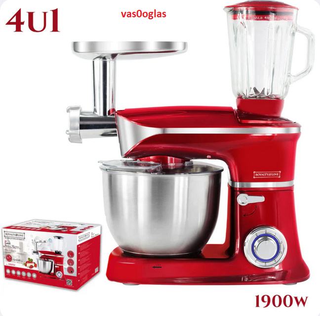 4 u 1 Miješanje i miješenje tijesta, mljevenje mesa, miješanje, aparat za tijesto. Široki aluminijumski noževi.