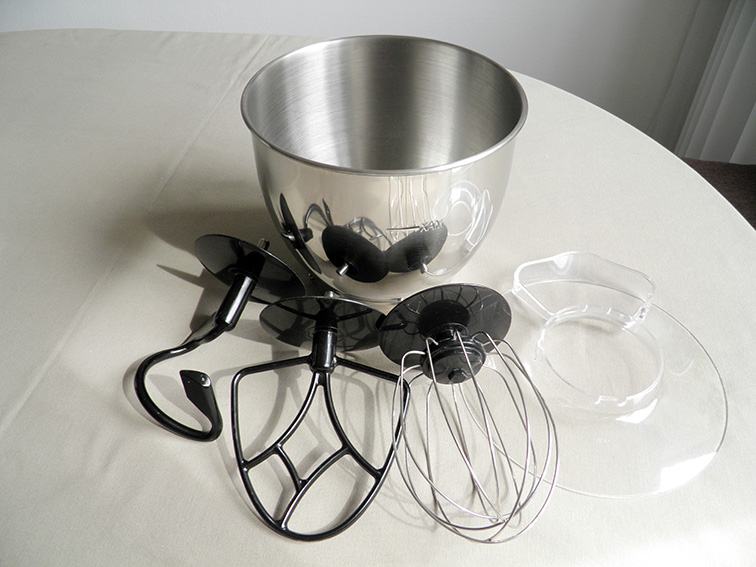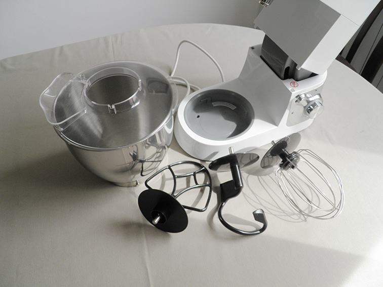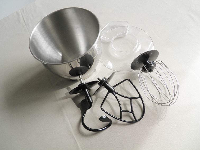 Uz posudu od nehrđajučeg čelika zapremine 3,6 lit., komplet sadrži 3 priključka za izradu tjesta, krema i šlaga te plastični poklopac posude za miješanje i orginalnim uputstvima. Ima 2 priključka za razne dodatke koje je moguće dokupiti (blender, sjeckalica i sl.).