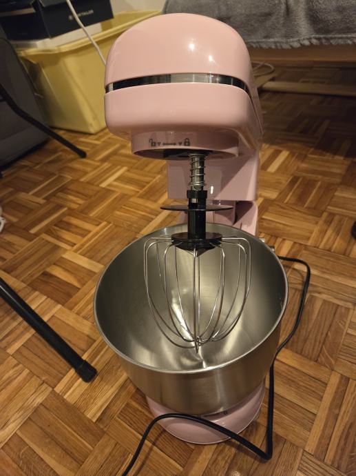 Prodajem samostojeći mikser u ružičastoj boji s metalnom posudom i 3 nastavka za uporabu.