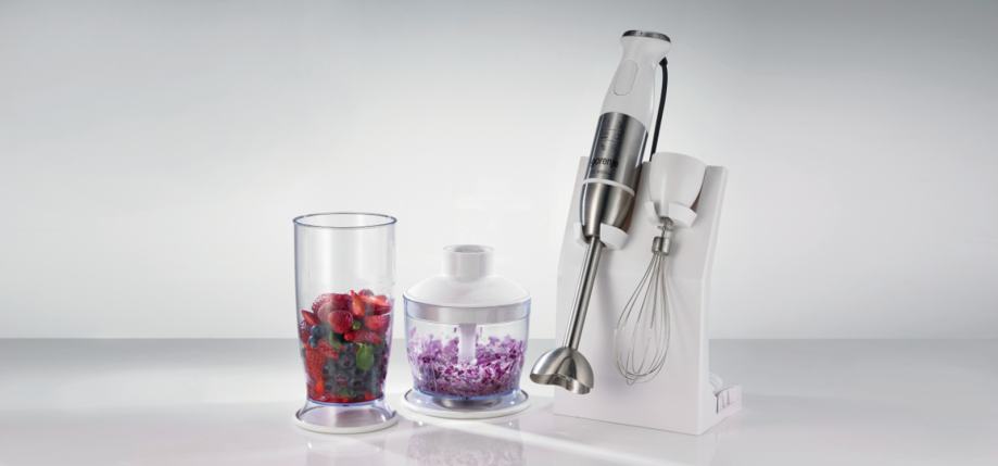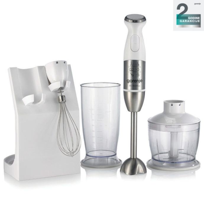 Nastavci štapnog miksera: Metalna noga za sjeckanje, Posuda za miješanje sa stalkom, Metlica za tučenje, Sjeckalica s posudom, Stalak