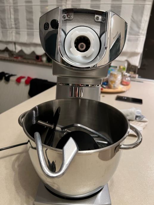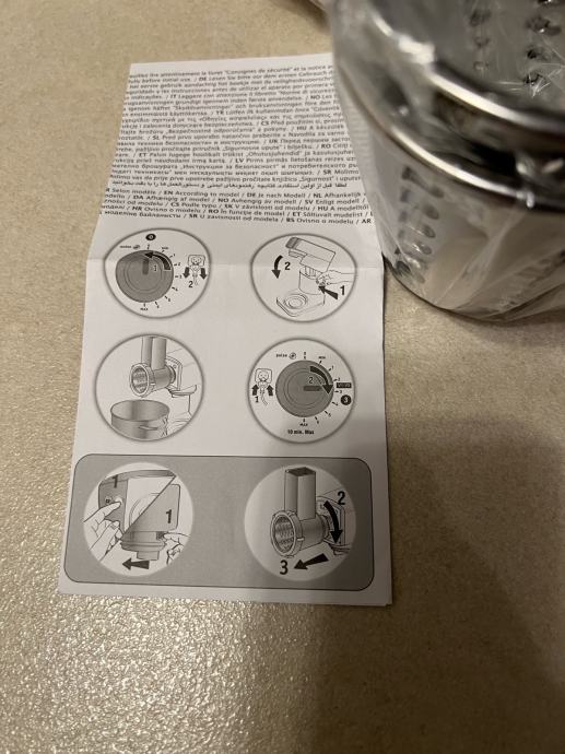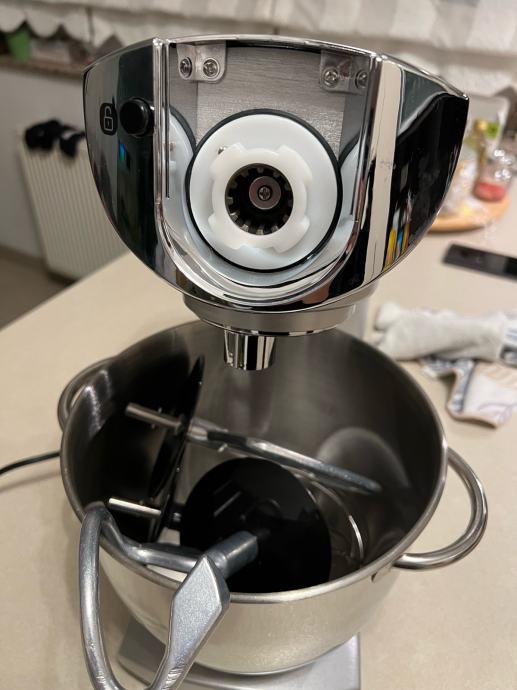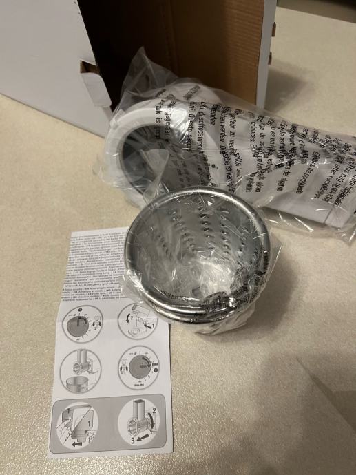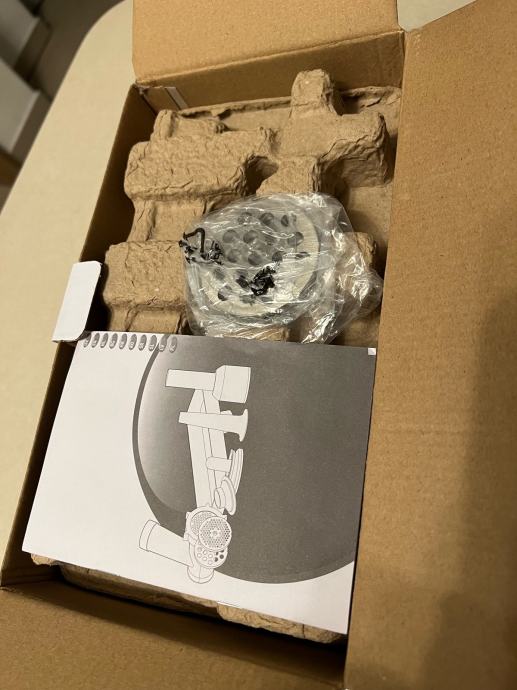 Aparat skoro nov,malo korišten. Dobiven na poklon. Samo su metlice za miksanje koristene a sve ostalo je novo original zapakirano. Sa nastavcima za meso,orahe,sokovnik,blender…