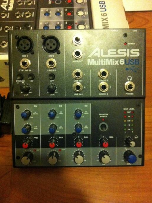 Prodajem USB miksetu Alesis Multimix 6USB u odličnom stanju za 750kn. Ima 2 mikrofonska/instrument i 2 stereo ulaza, te jedan stereo izlaz. Idealno za vježbu gitare iili vokala uz računalo..