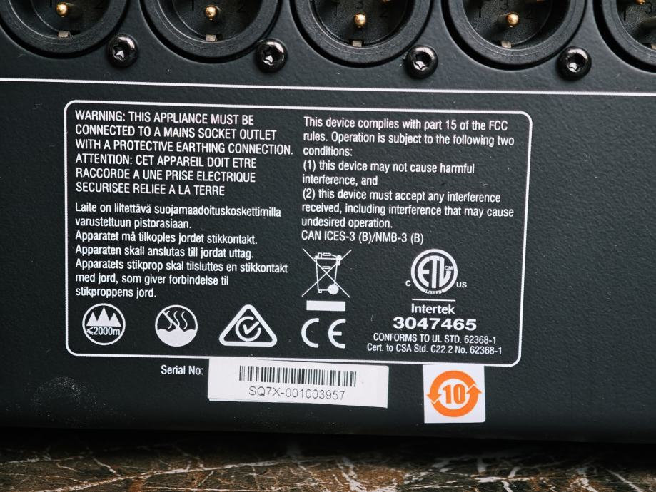 Digitalni 32 I/O mixer. Korišten u tvrtki, za studijske potrebe i događaje u zatvorenim i nezadimljenim prostorima. Kupljen 2022. Godine.