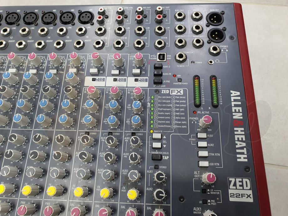 izvrsno očuvana analogna mikseta s 22 kanala (od čega ih je 16 s mikrofonskim XLR ulazima) i ugrađenim digitalnim efektima. Zbog svoje kompaktne veličine ZED-22FX je idealno rješenje za bendove koji su pri transportu ograničeni s prostorom. Zahvaljujući podesivom USB priključku audio snimanje i reprodukcija glazbe je vrlo jednostavna, a snimke snimljene u stereo načinu rada su zadivljujuće. ZED-22FX se jednostavno prilagođava vokalima, bubnjevima, gitari, basu i klavijaturama te omogućava korištenje 16 vrhunskih efekata koji ovoj Vašoj svirci daju extra ambijent.