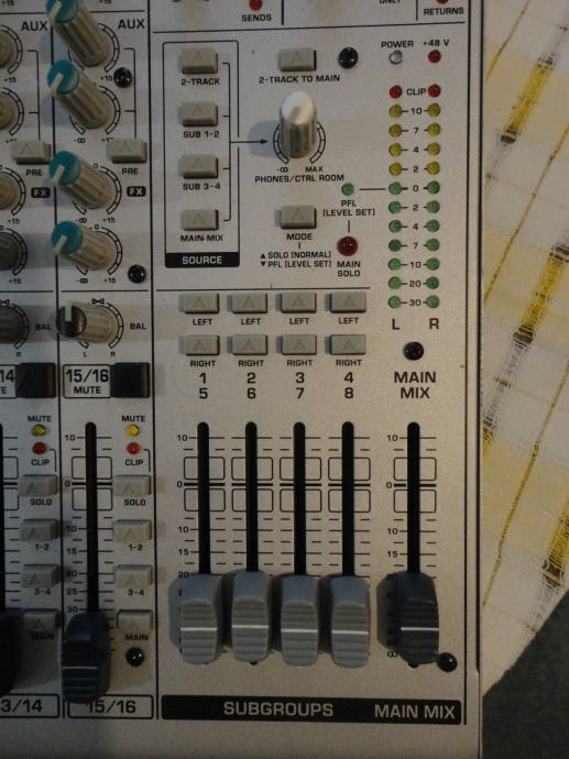 ♦ clip LEDice, mute, glavni mix i subgrupne preusmjerivačke tipke plus solo i PFL funkcije na svim kanalima