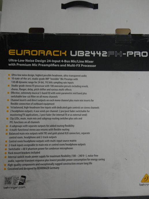 Prodajem mixer Behringer Eurorack UB2442FX-PRO.